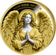 Betrachtet man die Münze genauer, offenbart sich die ganze Pracht dieser numismatischen Kostbarkeit. Der majestätische Schutzengel breitet seine goldenen Flügel schützend aus, während seine betenden Hände Frieden und Geborgenheit ausstrahlen. Die partielle Vergoldung verleiht dem himmlischen Wesen eine nahezu überirdische Ausstrahlung. Jedes Detail – von den fein ziselierten Federn bis zu den sanften Gesichtszügen – wurde mit größter Sorgfalt ausgearbeitet.