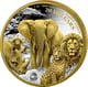 Drehen Sie die Münze um, und Sie betreten die afrikanische Savanne. Die Rückseite präsentiert eine spektakuläre Komposition aller fünf legendären Großwildtiere Afrikas: