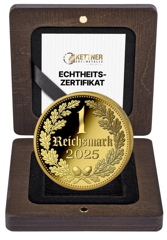Silber hat eine jahrtausendealte Geschichte als Wertaufbewahrungsmittel und Handelsmedium. Es dient vielen Anlegern als Inflationsschutz und Krisenschutz. Doch diese vergoldete Reichsmark-Medaille geht weit darüber hinaus. Sie ist ein Kunstwerk, das Geschichte atmet und gleichzeitig höchste Prägequalität verkörpert.