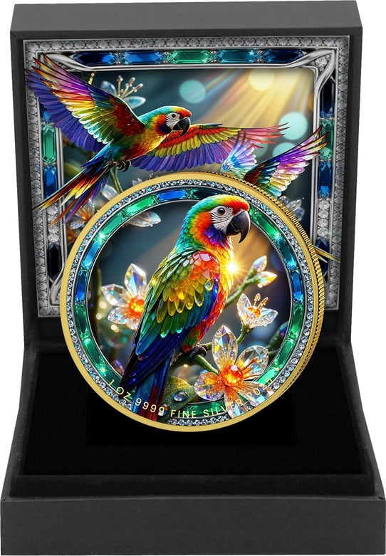 1 Unze Silber Papagei 2025 – Teilvergoldete Rarität in atemberaubender Farbpracht