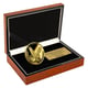 Die Münze wird in einem hochwertigen Holzetui mit edler Wurzelholzoptik geliefert. Das schwarze Samtinterieur bettet die Goldmünze sicher ein, während eine gravierte Messingplakette die individuelle Nummerierung trägt. So wissen Sie stets: Dieses Exemplar ist einzigartig. Ein Geschenk, das Generationen überdauert.