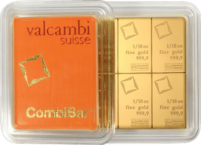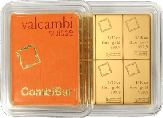 10 x 1/10 Unze Gold Combibarren Valcambi