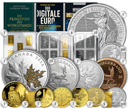 In einer Zeit, in der der digitale Euro vor der Einführung steht und finanzielle Unsicherheiten zunehmen, bietet Ihnen das Webinar Paket XL eine durchdachte Kombination aus bewährten Edelmetallen, exklusiven Sammlerstücken und explosivem Expertenwissen. Dieses sorgfältig zusammengestellte Paket vereint Gold und Silber in praktischen Stückelungen – perfekt als diskretes Tauschmittel und mobile Sicherheit für Krisenzeiten.