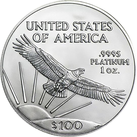 Das Motiv dieser Platinmünze ist der bekannte Weißkopfseeadler. Dieser befindet sich mitten im Flug und hat seine großen Flügel weit gespannt. Im Hintergrund ist die strahlende Sonne zu sehen. Über dem Vogel steht groß United States of America geschrieben.